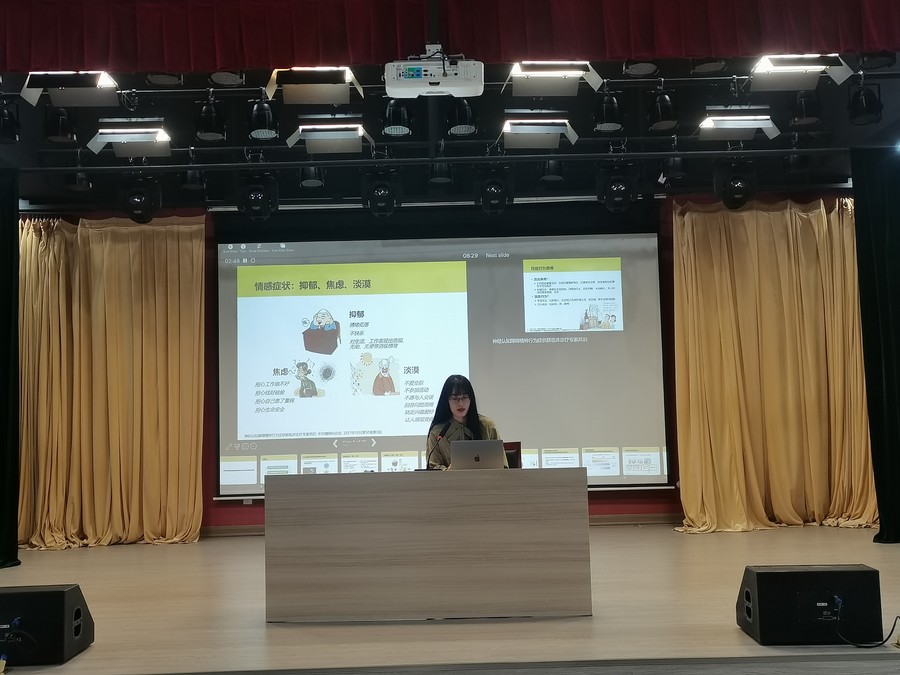 張醫生為轄區老年人科普心理健康知識。講座伊始,張醫生從老年人的心理發展規律深入淺出地分析老年人出現心理問題的原因。接著,結合實際案例,從老年人心理健康標準、老年人情緒等方面,向在座的老年人介紹了如何保持心理健康的方法,并以此學會更好地認知自我、管理情緒。最后,張醫生圍繞如何積極防治老人的心理疾病、解除心理障礙這一主題,向大家分享在日常生活中保持心理健康的小貼士,例如做一些力所能及的家務、擁有一個興趣愛好、保持與社會聯系等,同時保持平和心態,樂觀積極生活,促使心理、生理共同健康。大家紛紛表示,在今后的晚年生活中會適當調節自己,保持積極健康快樂的心態,提高晚年生活質量。