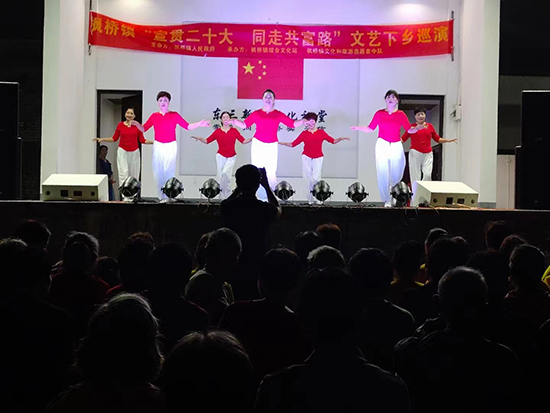 據(jù)了解,“宣貫二十大 同走共富路”送戲下鄉(xiāng)文藝巡演在鎮(zhèn)域內(nèi)31個(gè)村(社區(qū))開展,此次演出由楓橋鎮(zhèn)人民政府組織,楓橋鎮(zhèn)綜合文化站、楓橋鎮(zhèn)社區(qū)教育學(xué)校、楓橋鎮(zhèn)楓之韻藝術(shù)團(tuán)承辦。 旨在宣傳貫徹黨的二十大精神,為村民提供精神食糧,豐富群眾的文化生活。演員是本鄉(xiāng)本土的文藝愛好者,以楓橋鎮(zhèn)楓之韻藝術(shù)團(tuán)成員為骨干。(孫文明)