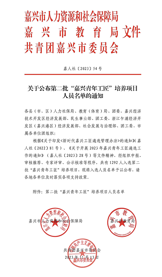 此次入選“嘉興青年工匠”培養項目的師生,都是近年來在各級各類技能比賽中取得了優異成績的。他們專業技能過硬、職業素養優秀、社會責任感強,是全校師生學習的榜樣。