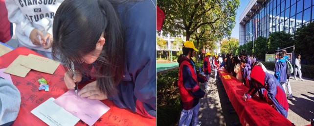尤其是在“書心愿 表感恩”環節,校團委的青年志愿者們早早來到場地,為活動的順利開展做好了充足的準備工作?;顒右婚_始,就吸引了眾多師生,工作人員們熱情地為同學們介紹了本次活動的內容及意義。師生們都積極地在印有“感恩于心,知恩于行”宣傳標語的橫幅上認真簽下了自己的名字;在心愿卡上寫下了真摯的祝福,滿懷憧憬地把心愿卡掛在樹上;還有許多同學認真地寫下了感恩信,把心聲帶給了老師,父母和重要的人。
