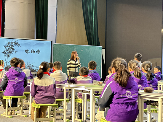 在生機盎然的紫瑯一小,大家聆聽了該校校長姜樹華的《校園文化中的育人場域設(shè)計》專題匯報。他以建校至今的多元活動為載體,將校園文化的緩緩流淌與成效娓娓道來,不僅有高屋建瓴的頂層設(shè)計,更有銳意進取的創(chuàng)新舉措。該校劉海燕老師為大家?guī)砹斯旁娬n《竹石》,充分展示了學校思考、思辨、思想的3s課堂流程,課上學生們獨立思考、踴躍展示、大膽質(zhì)疑、自主構(gòu)建的表現(xiàn)給大家留下深刻印象。功能教室學生的繽紛作品,河畔基地的飼育課堂,處處彰顯著紫瑯一小守樸開新的辦校理念,讓大家嘖嘖稱贊。