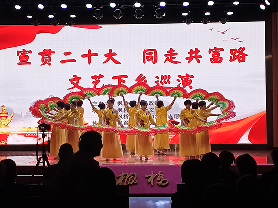 10月22日晚,諸暨市楓橋鎮(zhèn)楓源村的文化禮堂內(nèi)人頭攢動,村民們絡(luò)繹不絕地進入禮堂,原來這里要舉行“楓橋鎮(zhèn)‘宣貫二十大 同走共富路’送戲下鄉(xiāng)文藝巡演”晚會。