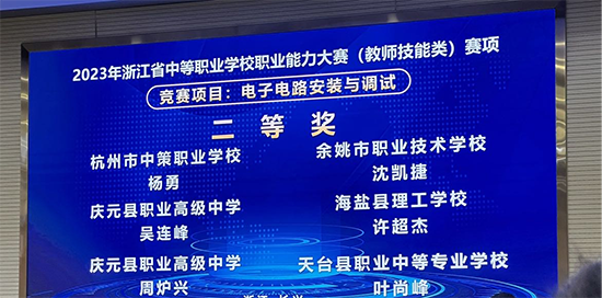 11月26日,由浙江省教育廳舉辦的2023年浙江省中等職業能力大賽(教師技能類)“電子電路安裝與調試”賽項比賽落下帷幕。海鹽縣理工學校青年教師許超杰榮獲省二等獎的優異成績。