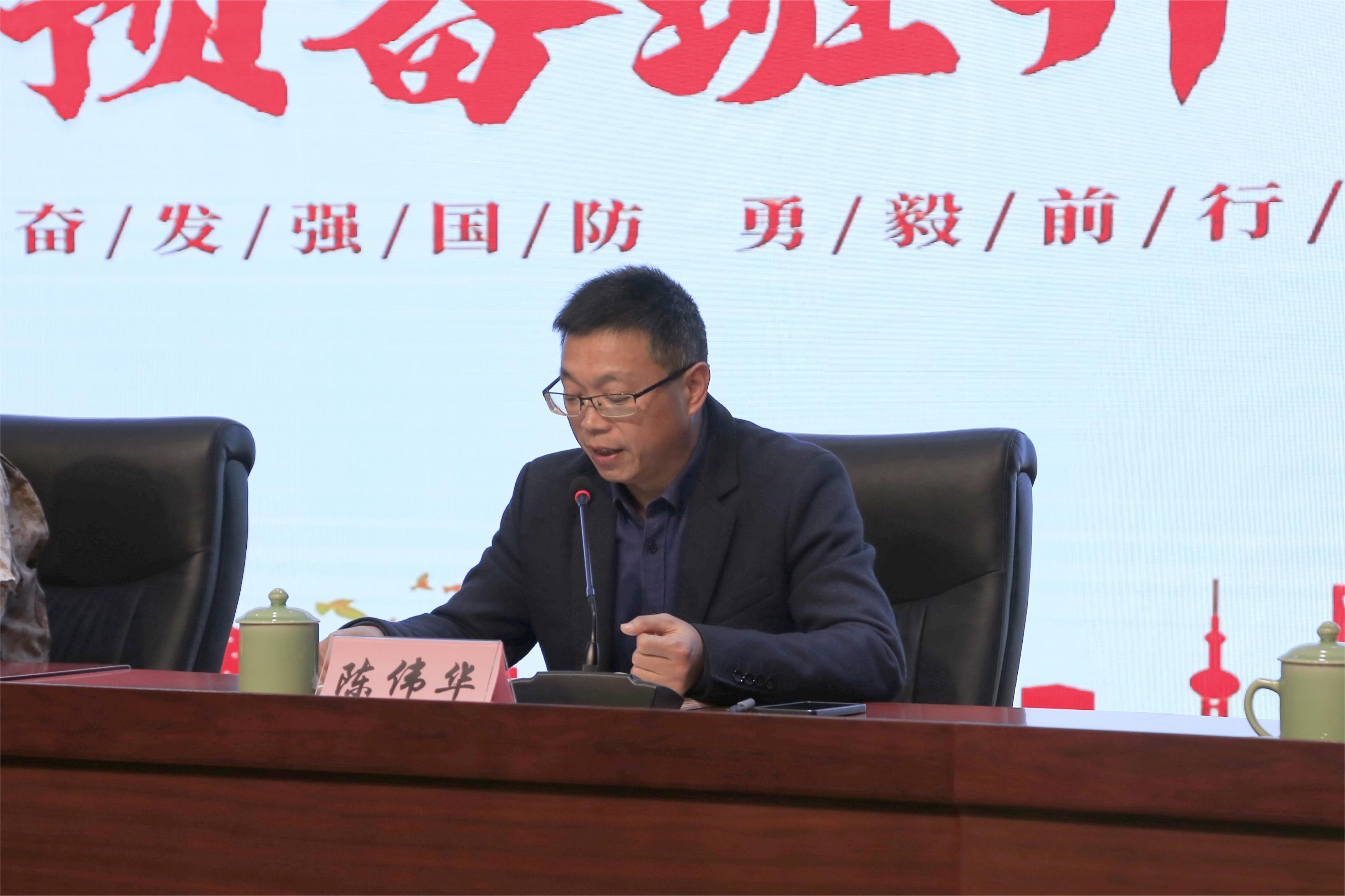 國防預備班教官黃毅作國防預備班2022學年年度工作總結。他用具體詳實的數據向大家介紹了國防預備班自開班以來的基本情況和取得的成績。他表示,經過一年的訓練,全體學員不僅提高了思想覺悟,增強了身體素質,培塑了作風紀律,更增強了社會責任意識,為家鄉建設貢獻青春力量。