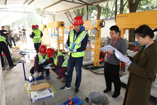 此次大賽采用“師生同賽”的創新型競賽設計思路,結合裝配式建筑構件安裝相關崗位對人才的知識、技能、素養要求進行競賽設計,以團隊方式進行,每隊3人,包含1名教師和2名學生。競賽內容主要包括理論知識、預制構件吊裝、預制構件灌漿三個模塊,比賽總時長為4小時。大賽通過師生組隊同臺合作競技的方式來實現“以賽促學、以賽促教”,推進師生共同提高,促進課堂教學模式變革和“雙師型”教師的培養。