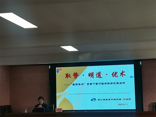 浙江省教育廳教研室江戰明老師作主題為《“素養導向”背景下高中數學教學改革啟示》專題講座,講座圍繞著“高考數學改革改在哪里”和“數學教學轉型轉向何方”兩方面,從“實現三大轉變”“強化三個功能”“落實三項舉措”“探索四考走向”“樹立四個風標”等內容展開。浙江省特級教師王紅權作主題為《回歸理性 夯實基礎——以導數試題為例談2024復習教學》專題講座,王老師從高考真題出發,探究高考數學題蘊含的數學思想,從高考題中提煉了直覺的重要性,點出了運算的重要性。湖州市高中數學教研員王勇強作主題為《高三數學復習備考策略和建議》的專題講座,他以歷年新高考試題為例,與大家分析了應用能力考查的“三考走向”——考閱讀、考推理、考運算。長興縣高中數學教研員王麗芳作主題為《從24屆一模縣情況分析談有效教學》的專題講座,王老師就一模試卷壓軸題的探究為主題與教師進行深入的交流。專家們通過高端前沿的理論結合多種試卷類型研究,為參訓教師接下去的教學工作提供了指導性建議,為對新高考、新變化、新要求正處于迷茫中的參訓教師指明了教學方向、解除了疑惑,老師們紛紛表示受益匪淺。
