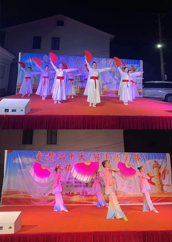 11月21日晚,諸暨市楓橋鎮(zhèn)陳家社區(qū)文化廣場(chǎng)臨時(shí)搭起的舞臺(tái)上燈光通明,“‘宣貫二十大 共走共富路’楓橋鎮(zhèn)文化下鄉(xiāng)巡演”在此舉行。