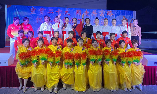 快樂(lè)的時(shí)光總是短暫的,熟悉的《我和我的祖國(guó)》的旋律響起,全體演員上臺(tái)合唱,此次巡演,共有歌曲、獨(dú)舞、越劇、廣場(chǎng)舞、表演唱等17個(gè)節(jié)目,豐富了村民們的鄉(xiāng)村文化生活,近300名觀(guān)眾沉浸在精彩節(jié)目的演出當(dāng)中。(孫文明)