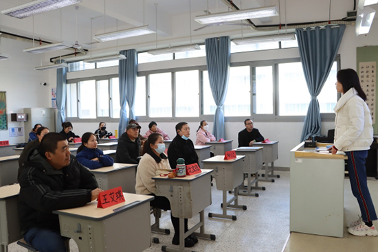 顏申君對高考/轉段考相關事項進行說明,向各位家長介紹了學校高三學生的升學方式、升學考試以及剛剛結束的單考單招技能考試等情況,建議家長從了解中職高考、理解孩子、相信學校三方面助力孩子成長,營造老師給力、家長接力、學生努力的良好氛圍。