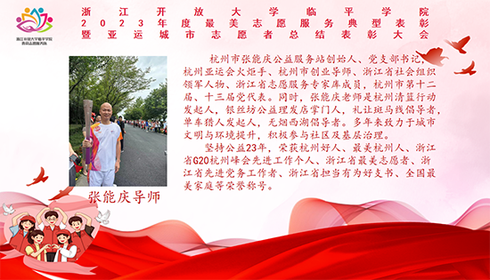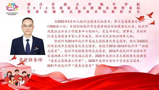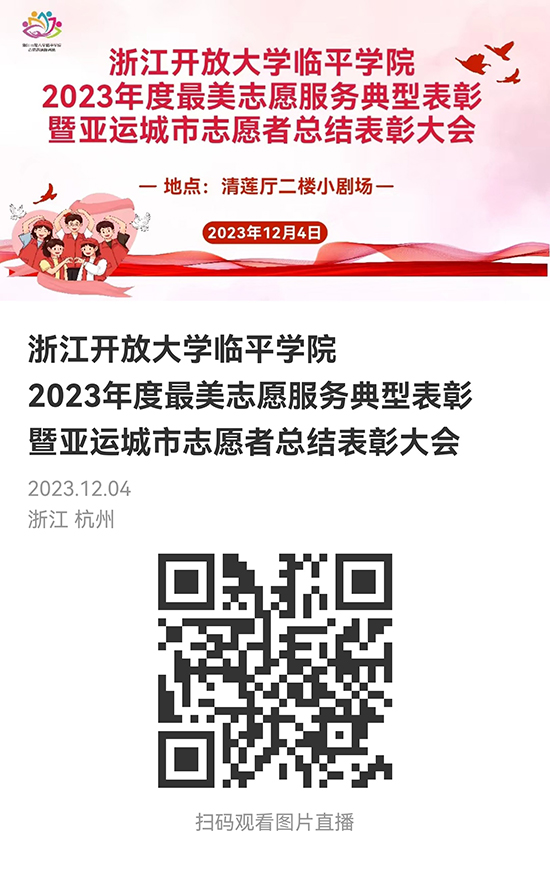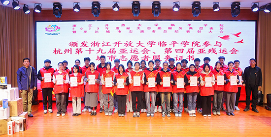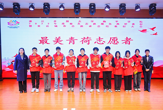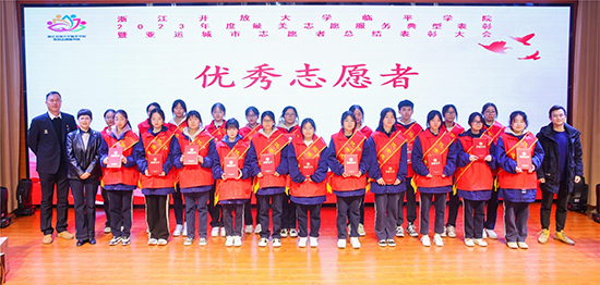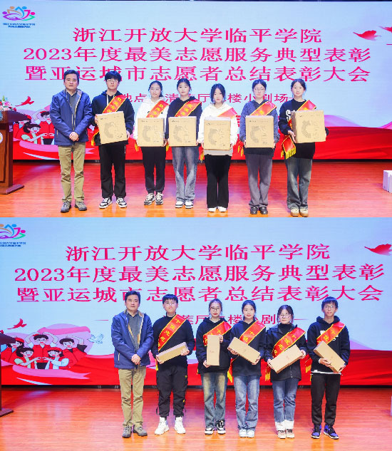 12月5日,是第38個(gè)國際志愿者日,也是浙江開放大學(xué)臨平學(xué)院第8個(gè)校園志愿服務(wù)月。12月4日下午,在學(xué)院清蓮廳小劇場(chǎng)隆重舉行儀式感滿滿的2023年度最美志愿服務(wù)典型表彰暨亞運(yùn)城市志愿者總結(jié)大會(huì),學(xué)院黨委副書記、院長沈琪,黨委書記邵曉舟,黨委委員、副院長唐瑛,青年志愿成長導(dǎo)師金丹文、張能慶、章賢鋒和相關(guān)職能部門負(fù)責(zé)人,以及受表彰的57位最美志愿服務(wù)典型代表和學(xué)生干部代表、志愿者代表參加。