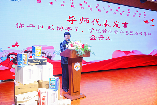 臨平區(qū)政協(xié)委員、學(xué)院首位青年志愿成長導(dǎo)師金丹文老師作為導(dǎo)師代表發(fā)言