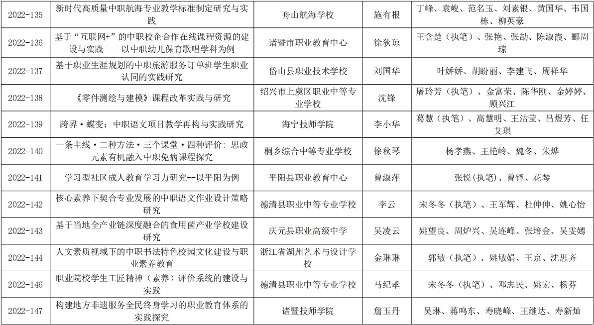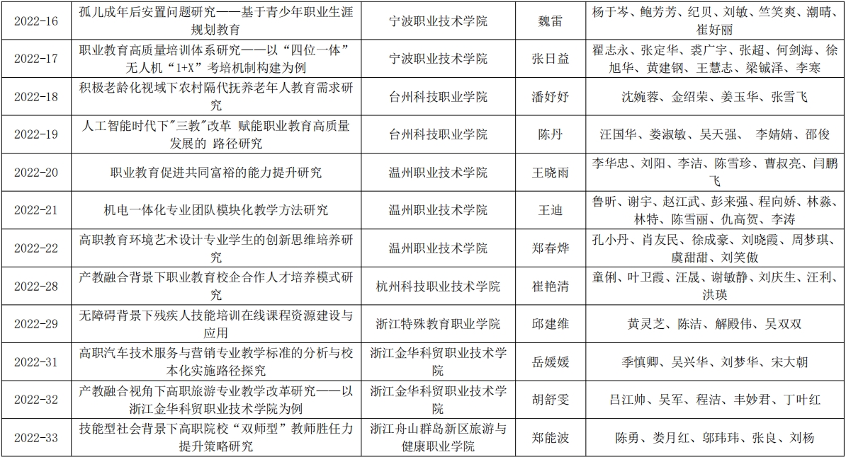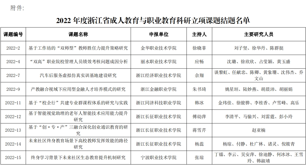 附件:2022年度浙江省成人教育與職業教育科研立項課題結題名單