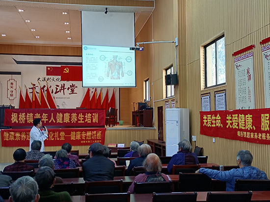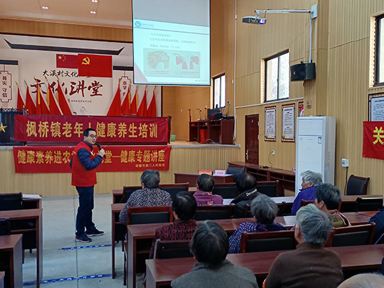 12月7日下午,諸暨市楓橋鎮社區教育學校邀請諸暨市第二人民醫院蔣鐵均與鐘強兩位專家走進楓橋鎮大溪村文化禮堂,為老年朋友科普宣傳,幫助老人們樹立正確的健康意識。