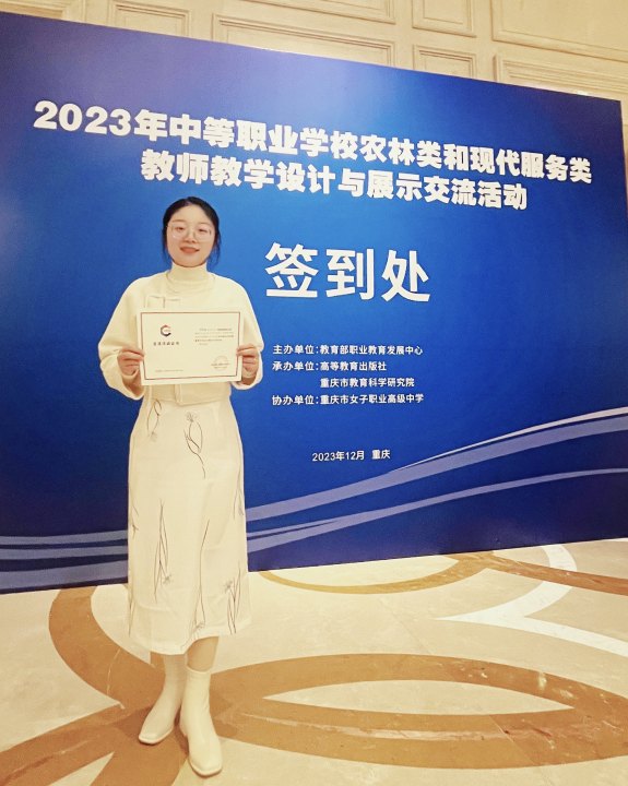 12月8日至11日,2023年中等職業學校農林類和現代服務類教師教學設計與展示交流活動在重慶舉行,紹興財經旅游學校文秘教師李瑪麗經過省賽選拔參加了此次活動,并通過精心準備取得優異成績。
