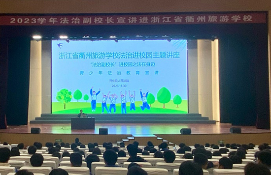 為進一步加強學校法治教育工作,提升學生法律知識水平,強化學生法律意識,學校邀請開化縣人民法院法官助理汪燁暉為同學們帶來法律知識講座。講座中,汪法官圍繞“什么是法?”“什么是校園欺凌?”“暴力發生時,我們應該如何應對?”等方面,結合相關案例展開講述,并通過現場互動,加深同學們對法的認識與了解。活動現場,汪法官還展示了國徽和法槌,讓同學們近距離感受法的威嚴與神圣。