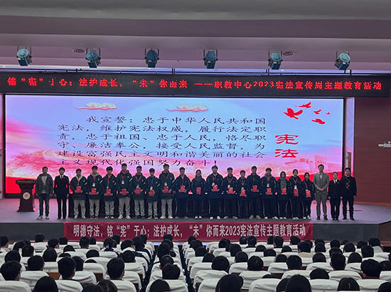 2023年12月4日是我國第十個(gè)國家憲法日,本次憲法宣傳主題:明德守法,銘“憲”于心,法護(hù)成長,“未”你而來。為扎實(shí)高效做好本次國家憲法宣傳教育活動(dòng),富陽區(qū)職業(yè)教育中心邀請(qǐng)杭州市富陽區(qū)人民法院民三庭庭長韓亞子、助理季裕、杭州市富陽區(qū)青聯(lián)委員,浙聯(lián)律師事務(wù)所團(tuán)支部書記凌子凡律師、學(xué)校德育處主任徐先鋒、學(xué)校安保主任郎烈剛出席活動(dòng),活動(dòng)由徐先鋒主持。