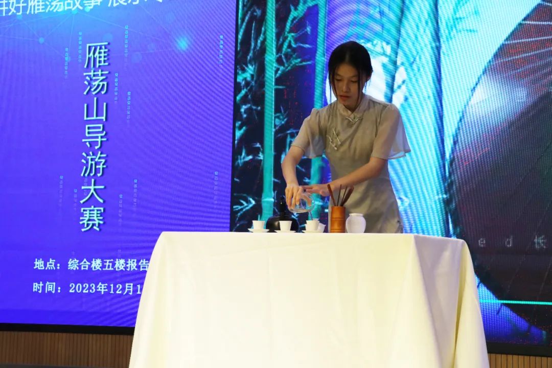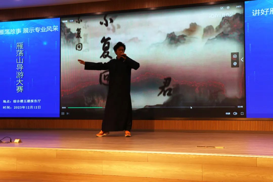 來自不同班級的10位選手就自選景點和當地文化進行講解,靈活運用導游技巧,通過熱情洋溢、生動活潑、準確清晰的導游用語,帶領大家了解美麗景色和地方特色。在才藝展示環節,各位選手精彩的表演也引得了在場觀眾的陣陣掌聲。