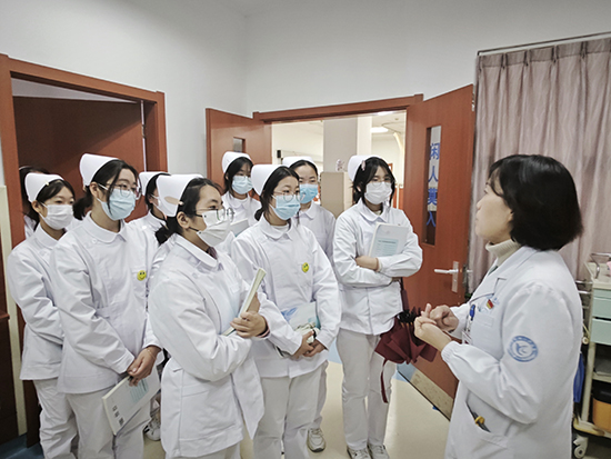 在護(hù)理部主任嚴(yán)長蘇的帶領(lǐng)下,同學(xué)們走進(jìn)病房,在與病人的交流中,切身感受成為一名護(hù)士的意義。