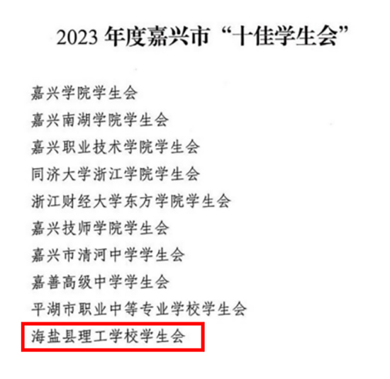 近日,嘉興市學聯二屆委員會委員團體工作成果擂臺賽在嘉興職業技術學院舉辦。海鹽縣理工學校學生會作為市學聯二屆委員會委員應邀參加比賽,并獲得“嘉興市十佳學生會”榮譽稱號,這也是該校學生會第三次獲此殊榮,是嘉興市域范圍內唯一一所連續三年榮獲該項榮譽的中學。