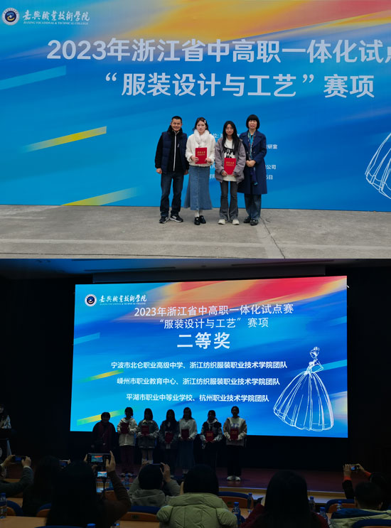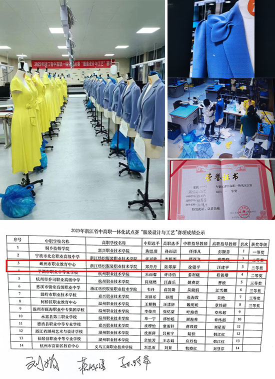 12月13日,在2023年浙江省中高職一體化試點(diǎn)賽“服裝設(shè)計(jì)與工藝”比賽中,嵊州市職教中心21服裝大專班的鄭丹丹同學(xué)、20服裝大專班畢業(yè)生陳翠萍同學(xué)榮獲浙江省二等獎(jiǎng)。