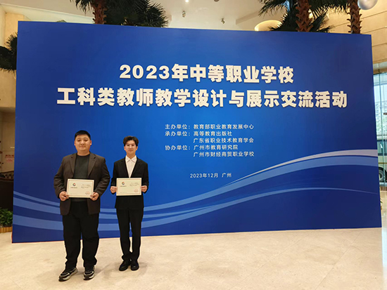12月17日,在廣州剛剛結束的2023年全國中等職業學校工科類教師教學設計與展示交流活動中,經過激烈角逐,蒼南縣職業中等專業學校汽修專業何駿杰、高得老師表現優異,獲得評委一致好評,雙雙斬獲國賽一等獎(典型案例)。