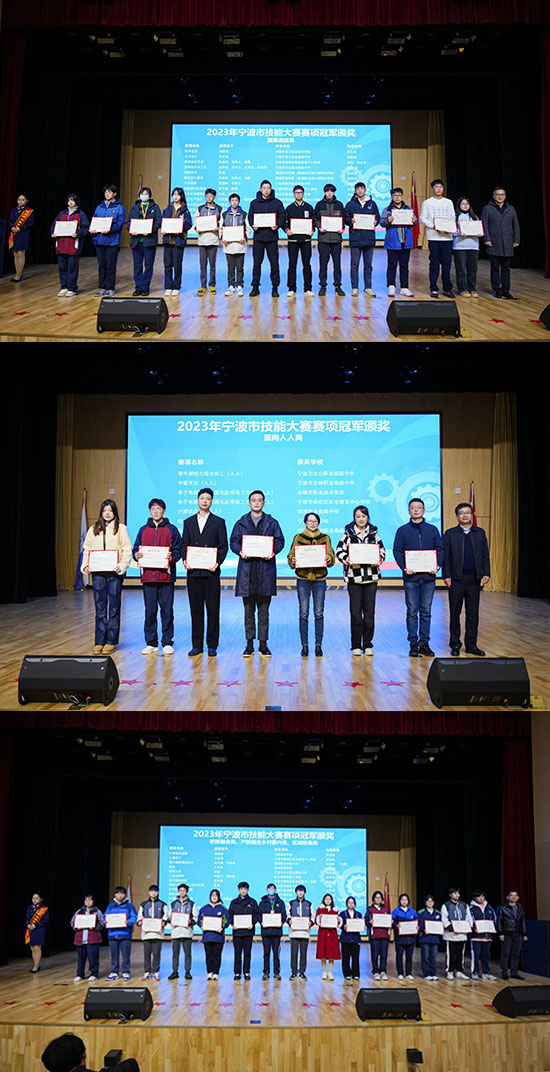12月19日,第十八屆寧波市中等職業學校(技工院校)技能大賽圓滿落下帷幕,在本屆大賽中,鄞州職業高級中學(以下簡稱“鄞州職高”)一如既往勇創佳績,榮獲47塊獎牌,一等獎5個,二等獎16個,三等獎26個,位列全大市第6,較去年又有了穩步提升。其中,汽修維修項目,葛建峰老師與學生李振宇(師生同賽),文書處理綜合技能項目,劉芬萍老師指導的邵雪同學,智慧物流項目,馮期老師指導的吳金浩同學,分別斬獲參賽項目的第一名,在閉幕式上參加了頒獎典禮。