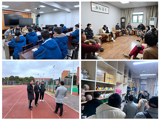 調研組實地踏勘籃球場、操場等體育場地、器材室以及體育辦公室,通過查閱相關臺賬資料、開展教師和學生座談,聽取虞國良和宋春發老師的兩堂體育與健康公開課,深入了解海寧職高日常體育工作開展情況。