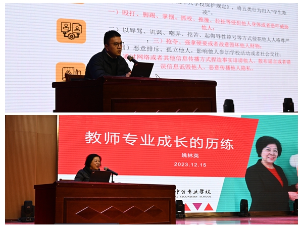 省特級教師、正高級講師姚林英老師為大家?guī)砹祟}為《教師專業(yè)成長的歷練》的專題講座。姚老師秉承著“生命不息,攀登不止”的信念,先后榮獲“全國模范教師”“浙江省最美教師”“全國職業(yè)教育先進(jìn)工作者”等多項(xiàng)榮譽(yù)。她結(jié)合自身成長經(jīng)歷,從師德觀、教育教學(xué)主張、科研觀、視域觀等方面向大家講述了39年深耕職業(yè)教育的感人故事,現(xiàn)場響起一次又一次熱烈的掌聲。