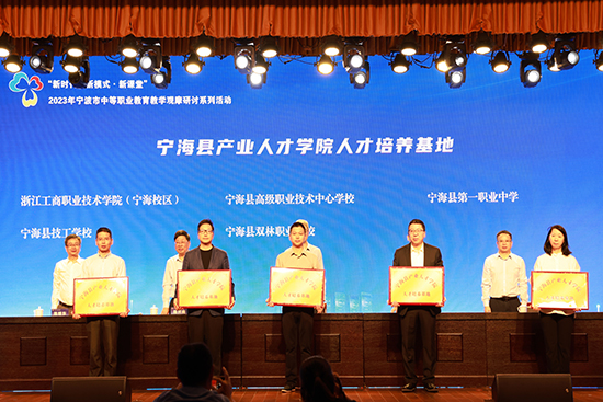 開幕式現場還為“第二批省區域中高職一體化人才培養改革校”(寧波4所)和“寧海縣產業人才學院人才培養基地”進行了授牌。