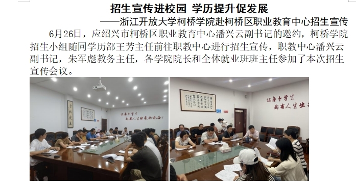 近日,浙江開放大學(xué)下發(fā)《關(guān)于公布第二批辦學(xué)水平評(píng)估結(jié)果的通知》(浙開大評(píng)估函[2023]2號(hào)),柯橋?qū)W院獲得“優(yōu)秀-”等級(jí),順利通過評(píng)估驗(yàn)收。