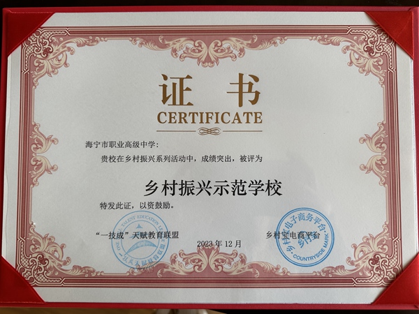 12月28日,海職高入選“一技成”天賦教育聯盟鄉村振興示范學校。近年來,海職高堅持服務鄉村振興發展戰略,通過“山海協作”結對幫扶、東西部協作援教幫扶、開展服務鄉村振興技術指導工作和開展非遺文化下鄉活動,為鄉村振興提供人才支撐,助力地方區域經濟發展,實現共同富裕。