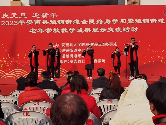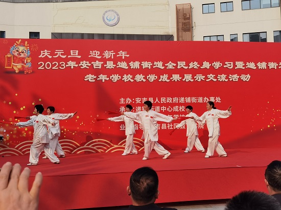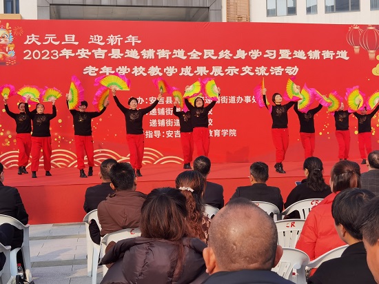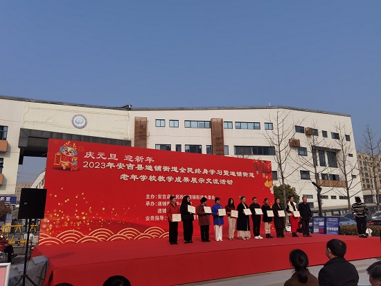 12月29日下午,安吉縣社區(qū)教育學(xué)院遞鋪分院組織開展2023年安吉縣遞鋪街道全民終身學(xué)習(xí)暨老年學(xué)校教學(xué)成果展示交流活動,邀請了老干部局副局長牟嬌珺,遞鋪街道副書記湯軍,遞鋪街道黨工委委員李偉,教育局職成教副科長夏吉偉,安吉縣社區(qū)教育學(xué)院書記、院長時志福,安吉縣社區(qū)教育學(xué)院副校院長應(yīng)勇華,還有各個村、社區(qū)的書記和學(xué)堂負(fù)責(zé)人,安吉縣各鄉(xiāng)鎮(zhèn)老年學(xué)校的校長和所有成校的全體教師參與活動。來自遞鋪分院眾多培訓(xùn)班和學(xué)習(xí)社團的100多位學(xué)員獻(xiàn)上了9個精彩的節(jié)目和四個體驗項目。