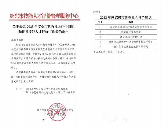 新年伊始,喜訊迎新,2023年度紹興市優秀社會評價組織評選結果出爐,諸暨市職業教育中心金榜題名,也是諸暨市唯一上榜單位。