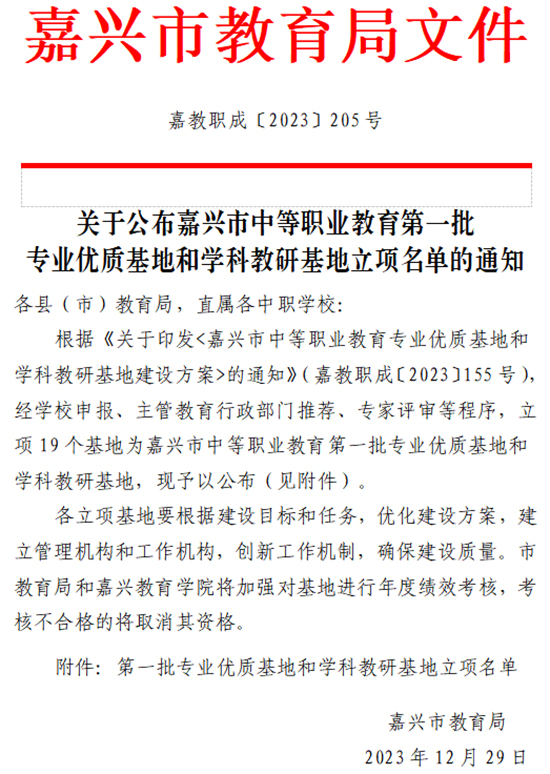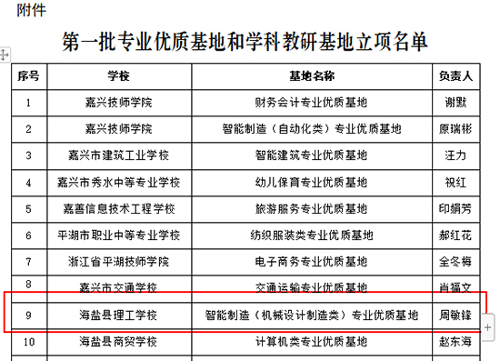 近日,嘉興市教育局發(fā)布了《關(guān)于公布嘉興市中等職業(yè)教育第一批專業(yè)優(yōu)質(zhì)基地和學(xué)科教研基地立項(xiàng)名單的通知》(嘉教職成〔2023〕205號(hào)),確定海鹽縣理工學(xué)校智能制造專業(yè)(機(jī)械設(shè)計(jì)制造類)為嘉興市中等職業(yè)教育第一批“專業(yè)優(yōu)質(zhì)基地”。