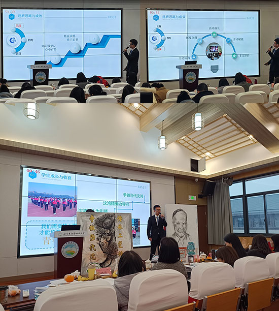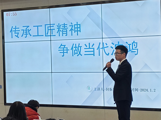 封振宇老師以“傳承工匠精神,爭做當代沈鴻”為主題,從班級情況與目標、建設思路與成效、學生成長與收獲三個方面闡述了建班育人情況。封老師在帶班過程中牢牢融入仿真企業建設理念,將班集體賦名為鵑湖新青年工業設計有限公司,以沈鴻院士為引領、以沈鴻精神為導向,通過“三段四方五體”的班級育人模式,不斷引導學生立志報國、筑夢奮斗,踐行工匠精神,爭做當代沈鴻。