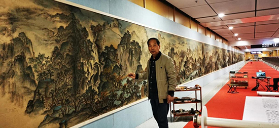 徐樹康創作百米長度的巨制《錢塘綠水青山圖》,從收集素材、實地學習采風,歷時三年多,自費上百萬。在今年6月由亞組會宣傳部、浙江省文聯、浙江美術家協會等主辦的“迎亞運 助共富 繪宏圖——‘兩源三江’美術書法作品展”展出后被杭州國家版本館收藏。