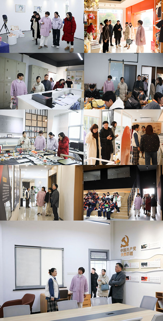 隨后,浦江縣職業(yè)技術(shù)學(xué)校教師一行實(shí)地考察了學(xué)校的美育作品展廳、心理健康教育指導(dǎo)中心、童裝品牌展示中心、湖畔之思工作室、藝承工作室、學(xué)生事務(wù)中心、一爾皮具工作室、匠心坊、工美箱創(chuàng)中心、服裝實(shí)訓(xùn)室、旅游實(shí)訓(xùn)室、小型音樂(lè)廳、舞蹈房等教育教學(xué)場(chǎng)所,詳細(xì)了解學(xué)校在雙高建設(shè)、校園文化等方面的經(jīng)驗(yàn)與做法。濃厚的藝術(shù)氛圍讓老師們頻頻駐足,拍照學(xué)習(xí)。