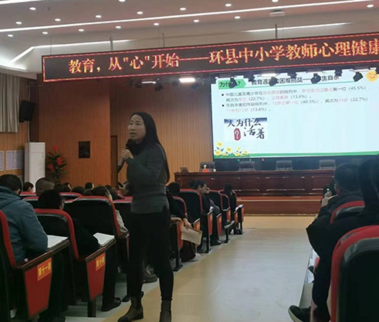 日前,浙江省德清縣職業中等專業學校專職心理健康教師崔明敏赴千里之外的西部革命老縣區——甘肅省環縣開展“心理健康教育和家校共育送教西行”活動,環縣近500名教師參加本次活動。