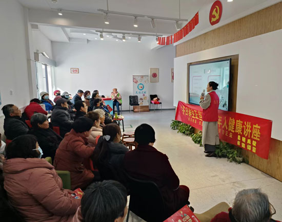 講座由安吉縣人民醫院門診部主任、中醫專科護士張瑩授課。張醫生以PPT的形式逐一分析心肌梗死、冠心病、腦出血、肺炎、骨折等冬季高發疾病的成因和防治要點。結合冬季的季節特征,從起居養生、飲食養生、精神養生、運動養生等方面進行詳細講解,科普冬季人體的自然運行規律和養生智慧,讓老年人了解合理起居飲食、日常鍛煉等方法,達到強身健體、遠離疾病困擾、延年益壽的目的。并分享了“秋冬養生十八法”,提醒老年人日常生活中隨時隨地都可以進行養生保健。現場,老年人就日常生活中的養生誤區提問,張醫生均耐心細致地回答,并教給正確的養生觀念。講座結束后,張醫生還用聽診器、血壓測量儀等為有健康困擾的老年人免費義診。