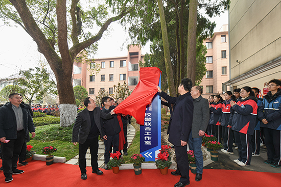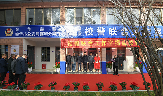 1月9日下午,金華實驗中學校警聯合工作室舉行揭牌儀式。婺城區人民政府副區長、金華市公安局婺城分局黨委書記、局長嚴衛星,婺城區教育局黨組書記、局長張建華,金華市公安局婺城分局副局長華天翔,婺城區教育局黨組成員胡崇祿,金華市公安局婺城分局白龍橋派出所教導員徐偉軍,婺城區教育局黨組成員、金華實驗中學黨總支書記俞秀玲及學校管理團隊、教師代表、社區代表、家長代表、學生代表、校保安代表等近300人參加。揭牌儀式由學校常務副校長(正校級)王志偉主持。
