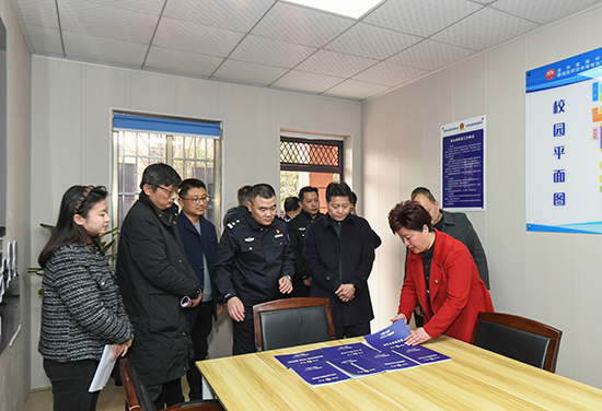 隨后,嚴副區長一行在俞書記的陪同下,參觀了校警聯合工作室的各功能辦公室,有聯合辦公室、綜合指揮中心、調解會商室、教育訓誡室、詢問室、校紀校規輔導室、談話教育室、PTSD干預室等場地,仔細詢問了解了各場地的功能。嚴副區長指出,校警聯合工作室的成立,將進一步穩定和鞏固校園治安秩序,依法嚴厲打擊涉生涉校違法犯罪,保護廣大師生人身及財產安全,對保衛校園良好、穩定、和諧安全的教學、工作和生活秩序發揮重要作用。隨后對如何做好校警聯合工作室相關工作提出要求。