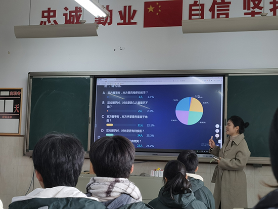 四、示范課展示。1月5日下午,全校300多位教師齊聚綜合報告廳,青年教師李晶晶帶領學生向領導和全校老師展示了高質量英語課示范課《Whitebone》。本節課以中國四大名著之一《西游記》中的神話故事為起點,通過角色扮演、動畫賞析、小劇場演繹等教學環節,巧妙地將新單詞、祈使句等相關知識點融入教學,讓學生更好地理解和應用英語知識的同時激發了學生的興趣和參與度。通過將課堂與文學經典相結合,給學生們打造了一個有趣而有效的學習體驗。