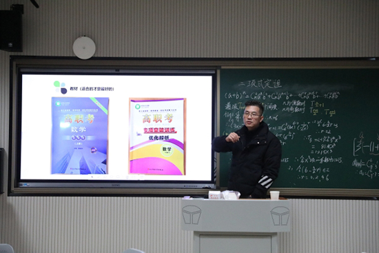 杭州市臨平職業高級中學王紅偉為數學教研組教師開展主題為《聊聊高職數學有關的那些事》專題講座,從常規、教研、整合三個部分出發,帶領教師們走進數學高職備考的真實世界,直視備考困難,探尋解困方法。同時,王老師還對復習課堂常見的授課效率、考綱把握等難點以及老師們提出的困惑,給出自己的見解和建議。