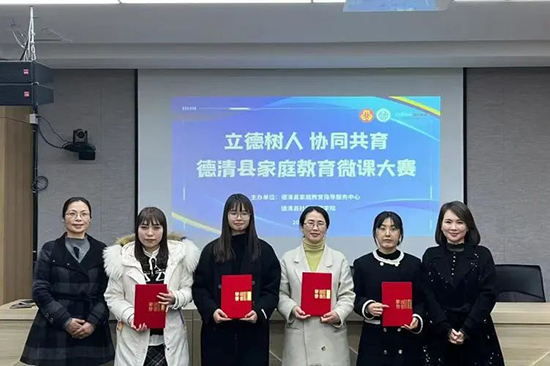 德清縣婦聯黨組成員、副主席姚旭麗為一等獎獲得者頒獎。縣家庭教育指導中心主任吳敏瑾、德清縣社區教育學院院長孫志惠為二等獎獲得者頒獎。德清縣社區教育學院辦公室主任管黎,培訓處主任高建萍為三等獎獲得者頒獎。浙江省家庭教育講師團成員、德清縣清溪小學副校長倪連芳,縣退休教師協會會長陳建美為優勝獎獲得者頒獎。