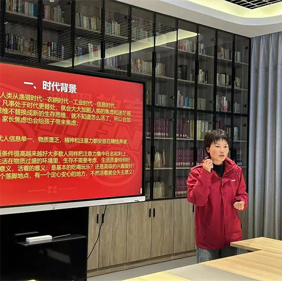 德清縣社區教育學院院長孫志惠講話。她強調新時代立德樹人,協同共育的重要性,指出加強德清縣家庭教育骨干隊伍建設和擴大家庭教育講師團隊伍的必要性,明確了大賽的流程與規則,并希望此次大賽能夠賽出成績、賽出水平、賽出風格。