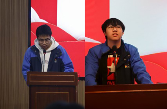 22廣廈班吳林偉同學代表新團員發言,他表示:“我們要樹立崇高的理想和信念,時刻保持對黨和人民的忠誠,堅定不移地走中國特色社會主義道路。”21建院班袁涵澈同學代表優秀團員發言,他對新團員說:“入團不僅是一種榮譽,更是一種責任和義務。希望你們能夠珍惜這個機會,不斷提高自己,為團組織增光添彩。我們要勇敢地面對挑戰,迎接未來的機遇和挑戰。”