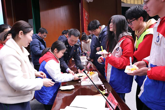 專題講座結束后,學生們迎來了激動人心的法治慶生活動環節。在這個特別的日子里,呂警官與師生共同切下了象征法治的蛋糕,分享16歲這份特殊的“法治成人禮”的喜悅與祝福。這個環節不僅象征著在法治的庇護下共同慶祝青春成長,更傳遞著對法治精神的堅定信仰和美好期許。