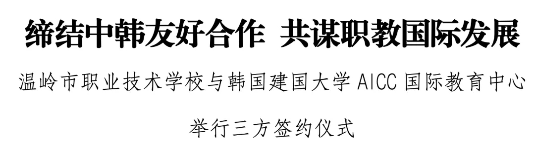 隨后,溫嶺市職業技術學校與韓國建國大學、AICC國際教育中心舉行三方簽約儀式。