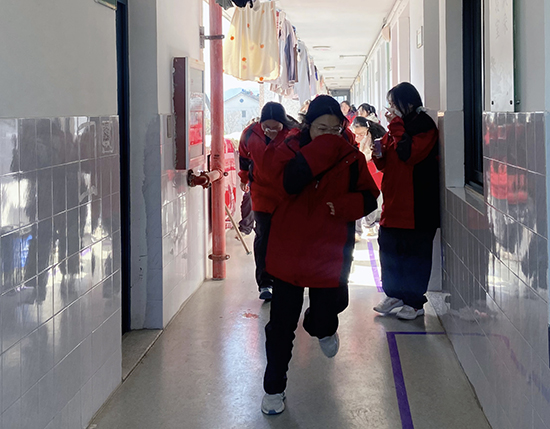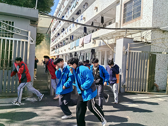 中午12時25分,疏散組及安全保障組成員迅速就位維持好各樓層寢室紀律,穩定學生的情緒,大聲地指揮,教育學生撤離時要注意保護頭部,彎腰撤離,注意樓梯口行走安全。學生從樓道疏散時一律靠右行走,要求保持嚴肅,嚴禁說話、嬉笑、打鬧,嚴禁搶先、推拉,做到有序疏散。遇到前面隊伍停止時,后面同學應立即停止,防止踩踏事故發生。12時30分,全體住校生學生嚴格按照演練要求,在“三短一長”警報鈴聲響起后,用濕毛巾(手)捂住口鼻,成縱隊迅速有序、彎著腰疏散到操場集中。學生到達操場指定位置后整隊待命。寢室長清點人數并上報。