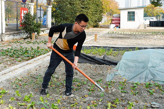 升學部同學雖種植技能還不夠嫻熟,但是不妨礙他們干得熱火朝天,興致盎然,現場充滿火熱的激情。他們興奮地說,當切身感受到勞動的過程時,才真正發覺春生夏長、秋收冬藏是多么美妙的事情,面對土地,只要默默耕耘,時間會給予勞動收獲。這正是“以勞健心”的真正體現。